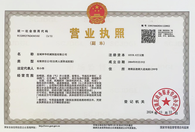 鹽城神華機(jī)械制造有限公司為中國石油、石化、海洋物資裝備(集團(tuán))總公司的網(wǎng)絡(luò)成員單位,公司注冊資金10558.8萬元整,公司通過了ISO9001國際質(zhì)量體系認(rèn)證,取得了中國船級(jí)社船舶產(chǎn)品和配件使用證書。